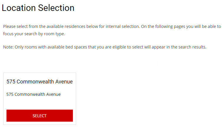 In this step you will be able to select from the available residences for internal selection.
