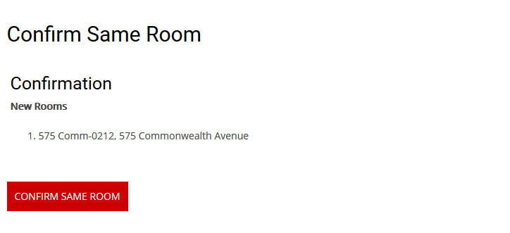 This is the final step of the room selection process. Here you will be able to view where you have assigned yourself and any group members.