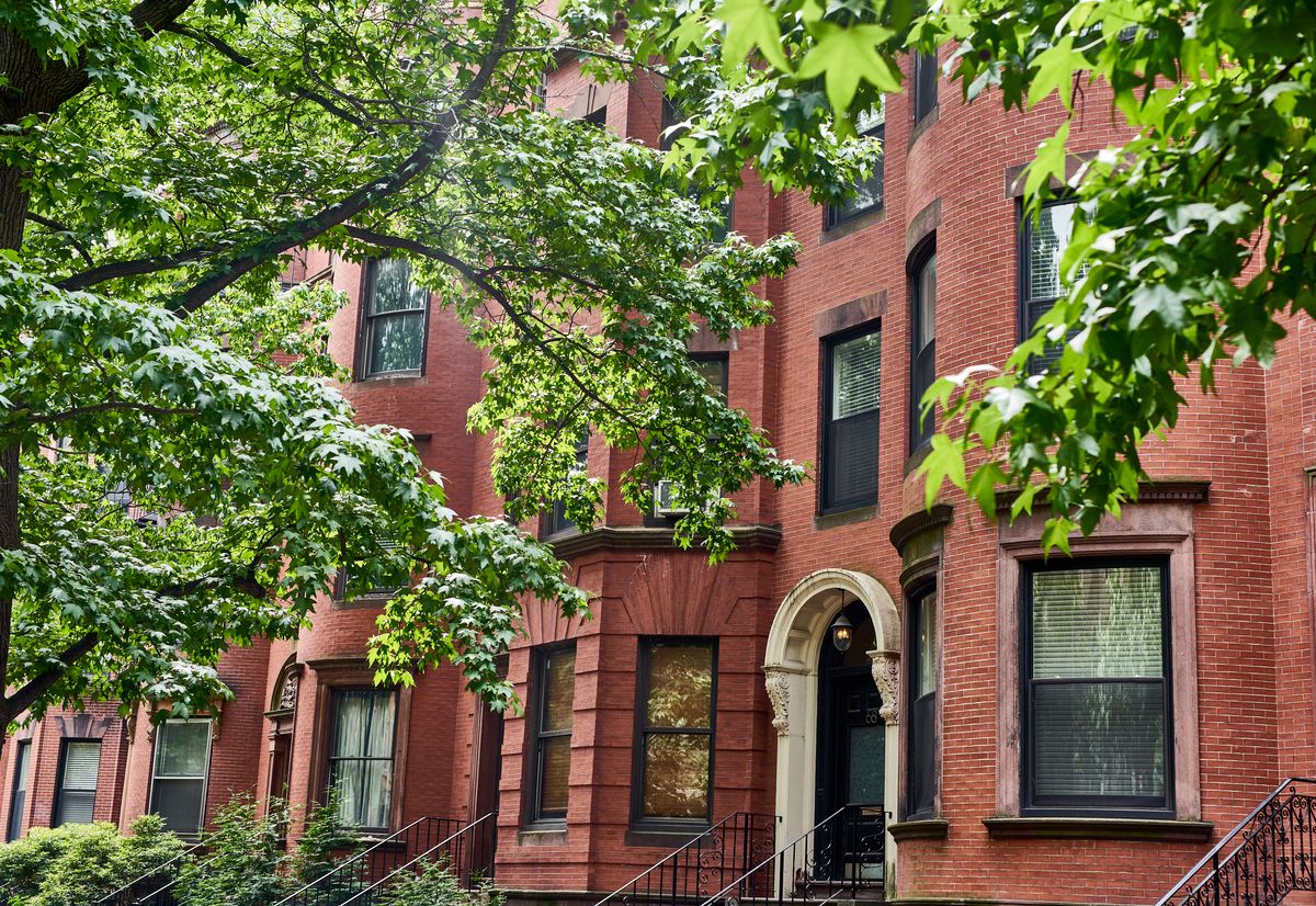 This typical Boston brownstone is one of eight contiguous houses (82 to 94 Bay State Road) built for George Wheatland, a prominent Back Bay developer, by architect S.D. Kelley in 1899. Kelley is responsible for almost thirty properties on the street.
